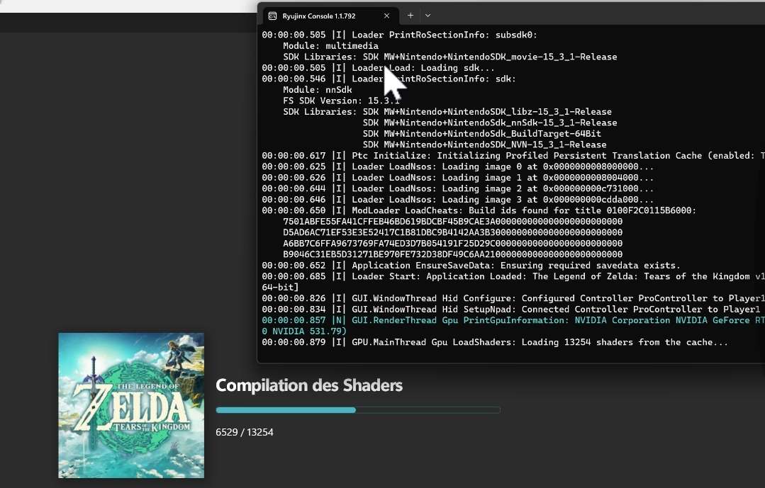 Si pendant le chargement ryujinx plante, relancer ryujinx et la compilation.
