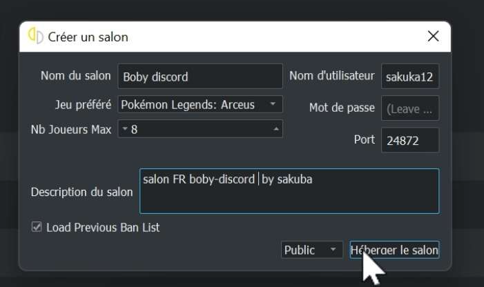 Créer un salon public de jeu
