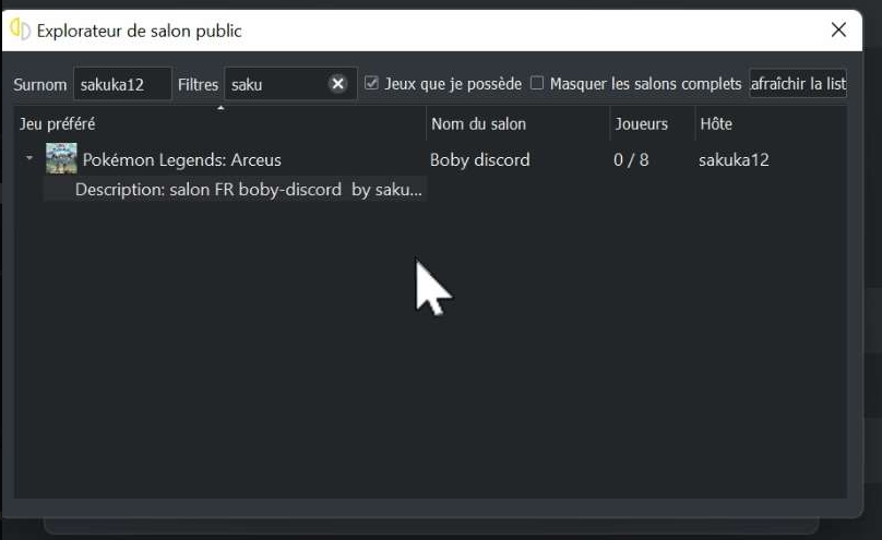 Rechercher un salon d'un membre pour y jouer