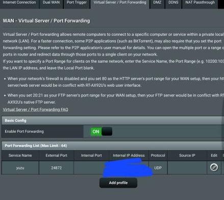 Pour asus , il faut aller dans WAN=> puis virtuel serveur/port forwarding