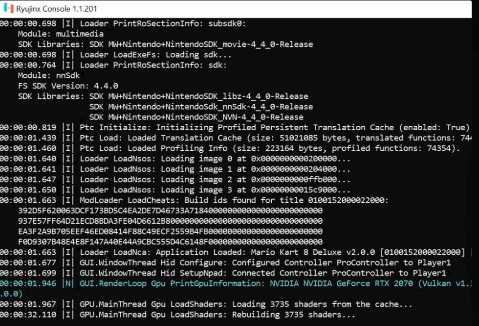 Si pendant le chargement ryujinx plante, relancer ryujinx et la compilation.