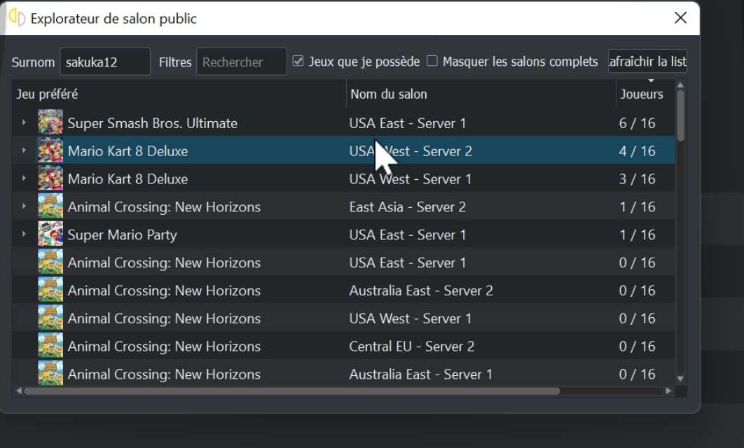 2. Déterminer un jeux pour lequel vous créé la partie de base. Ex pokemon arceus, puis après vous pouvez jouer à mario strikers, car vous êtes toujours connecté au même salon.