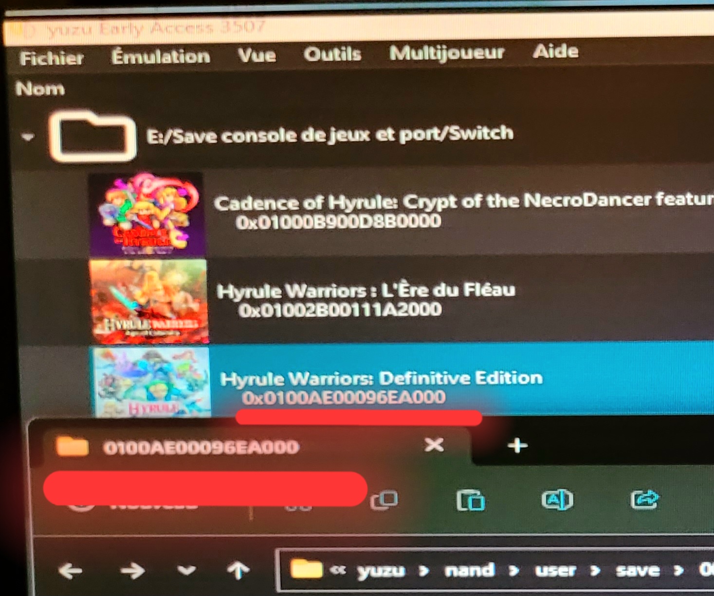 et chercher le numéro du dossier de votre jeu qui est afficher dans yuzu